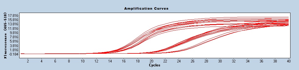 7、標(biāo)準(zhǔn)曲線樣品和待測(cè)樣品分別加入到含SG的RealTime PCR反應(yīng)液中,進(jìn)行 RealTime PCR擴(kuò)增和檢測(cè)。 8、檢測(cè)結(jié)果進(jìn)行標(biāo)準(zhǔn)曲線分析:以對(duì)待測(cè)樣品的目的基因進(jìn)行定量。相對(duì)定量實(shí)驗(yàn)需要進(jìn)一步用樣品的目的基因測(cè)得值除以管家基因測(cè)得值以校正誤差,所得結(jié)果代表某樣品的目的基因相對(duì)含量。